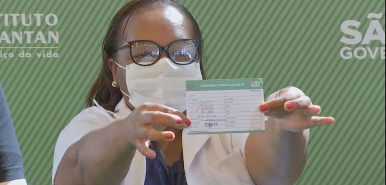 A enfermeira Monica Calazans disse ter orgulho de ter sido imunizada e pediu apoio à vacinação contra Covid. "Meu nome tá aí no mundo todo, 54 anos, negra, brasileira e participante de vacina. Vamos nos vacinar. Não tenham medo“, afirmou