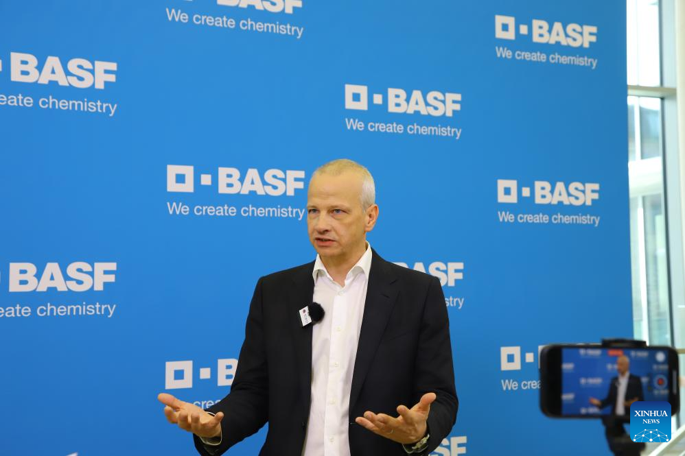 O CEO da gigante química alemã BASF, Markus Kamieth, fala em entrevista à Xinhua após a conferência de imprensa anual da empresa em Ludwigshafen, Alemanha, em 27 de fevereiro de 2026. (Xinhua/Liu Xiang)