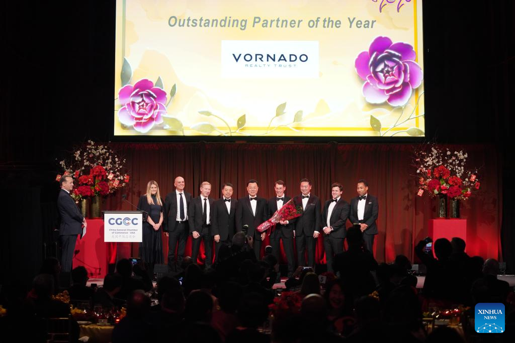 Com a presença de cerca de 300 pessoas, em sua maioria da comunidade empresarial da China e dos Estados Unidos, o evento homenageou diversas empresas cuja liderança, inovação e engajamento transfronteiriço contribuíram significativamente para o crescimento econômico, o intercâmbio cultural e o engajamento comunitário entre os dois países. (Xinhua/Zhang Fengguo)