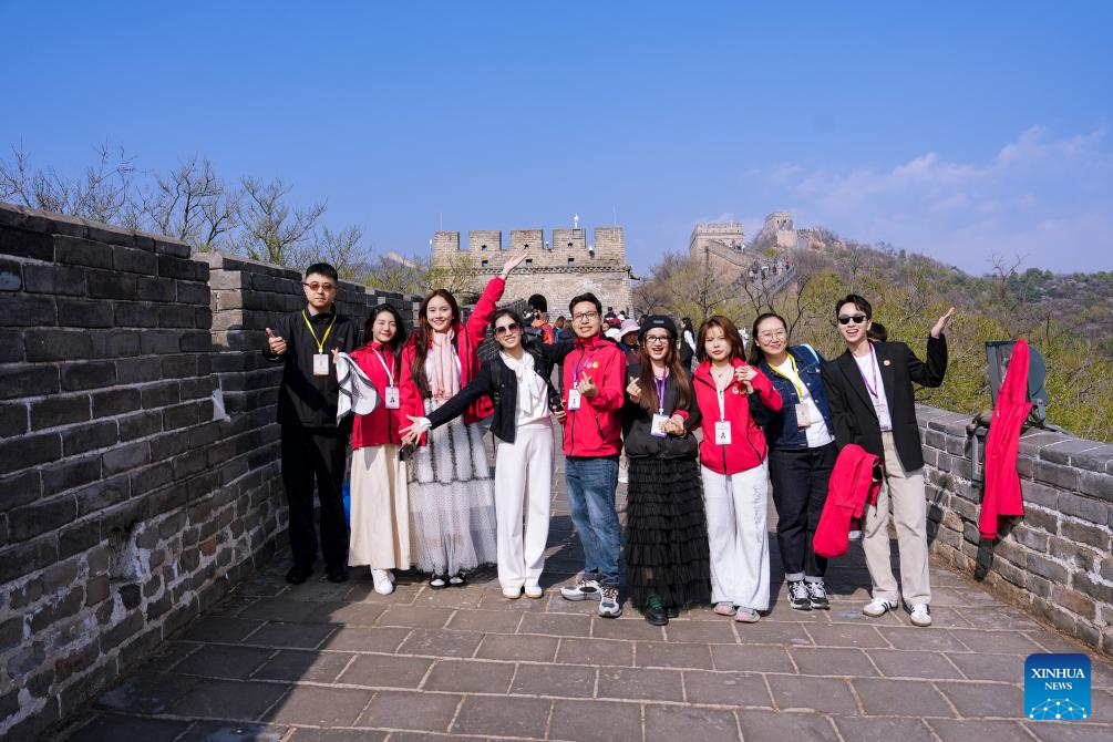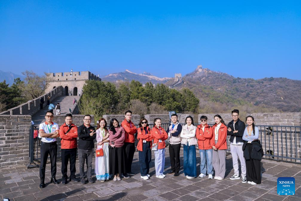 Jovens da China e do Vietnã visitam a seção de Badaling da Grande Muralha em Beijing, capital da China, em 14 de abril de 2026. Para muitos jovens vietnamitas participantes, as "Viagens de Estudo Vermelhas" pela China foram muito mais do que uma viagem turística, oferecendo, em vez disso, uma jornada através da história revolucionária compartilhada e uma nova inspiração para a geração mais jovem.