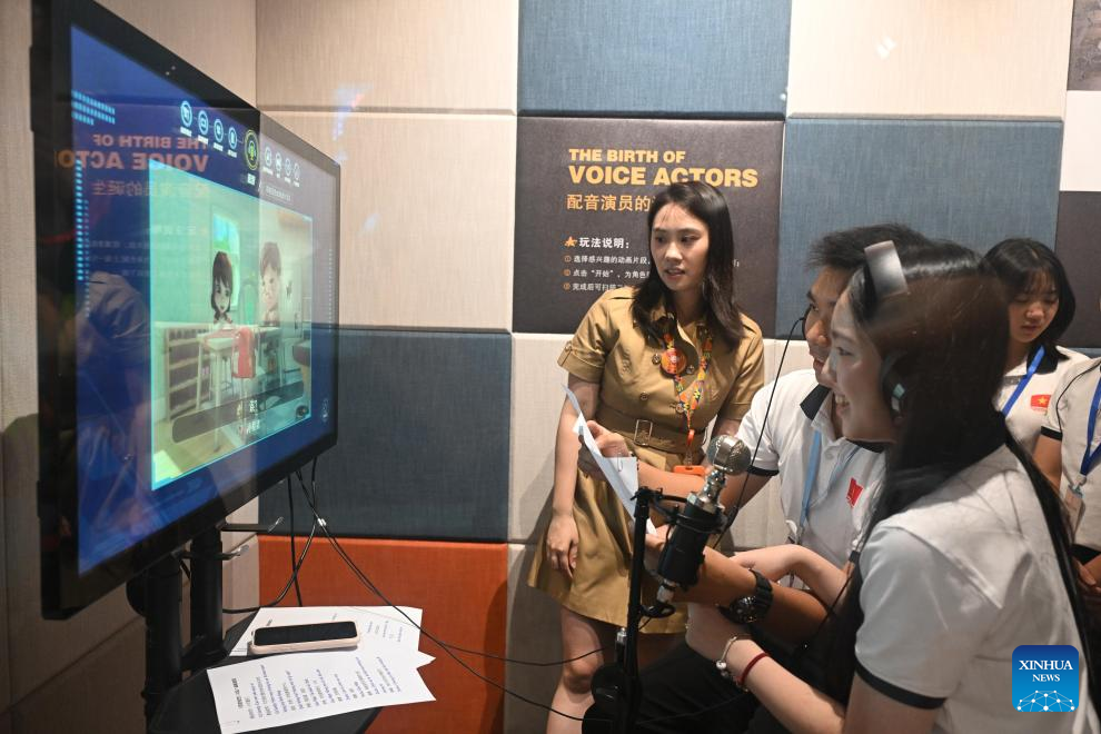 Participantes do programa "Viagens de Estudo Vermelhas" do Vietnã participam de uma experiência de dublagem em uma empresa de animação em Guangzhou, província de Guangdong, no sul da China, em 13 de abril de 2026. Para muitos jovens vietnamitas participantes, as "Viagens de Estudo Vermelhas" pela China foram muito mais do que uma viagem turística, oferecendo, em vez disso, uma jornada através da história revolucionária compartilhada e uma nova inspiração para a geração mais jovem.