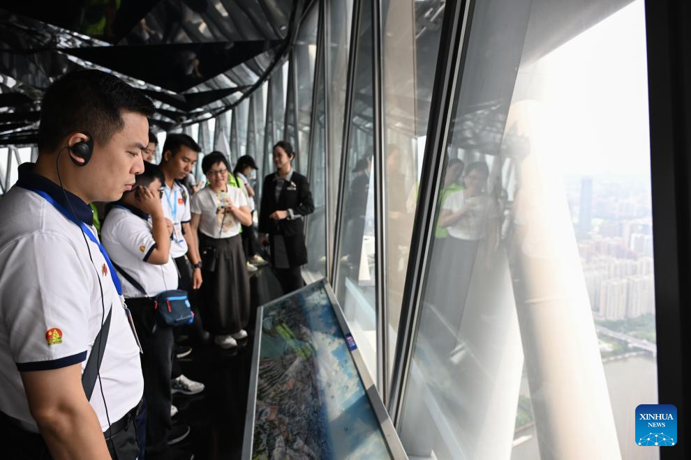 Participantes do programa "Viagens de Estudo Vermelhas" do Vietnã visitam a Torre de Cantão em Guangzhou, província de Guangdong, sul da China, em 13 de abril de 2026. Para muitos jovens vietnamitas participantes, as "Viagens de Estudo Vermelhas" pela China foram muito mais do que uma viagem turística, oferecendo, em vez disso, uma jornada através da história revolucionária compartilhada e uma nova inspiração para a geração mais jovem.