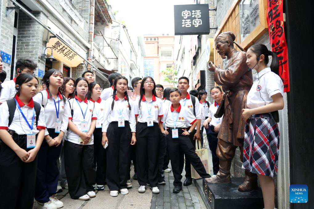 Lançada em maio de 2025, a iniciativa "Viagens de Estudo Vermelhas" busca facilitar o intercâmbio entre jovens da China e do Vietnã. Cerca de 200 jovens representantes de diversos setores do Vietnã estão atualmente na China em viagens de estudo como parte da iniciativa, que já atraiu mais de 1.000 adolescentes vietnamitas desde o ano passado. (Xinhua/Cai Yang)