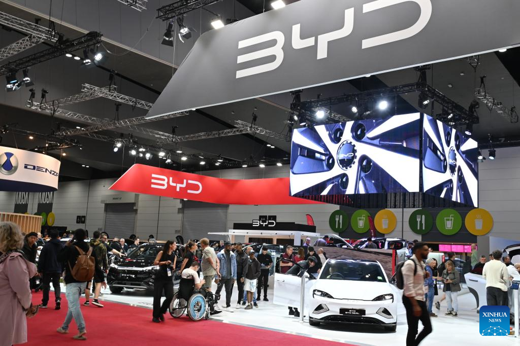 Visitantes no estande da BYD No Salão do Automóvel de Melbourne 2026, em Melbourne, Austrália, em 10 de abril de 2026. (Xinhua/Xu Haijing)