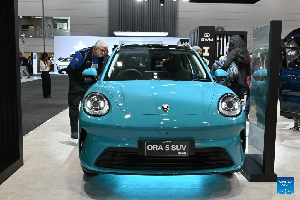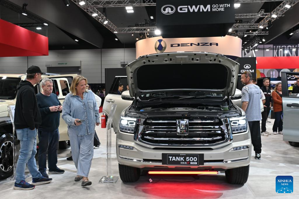 Visitantes no estande da Great Wall Motor no Salão do Automóvel de Melbourne 2026, em Melbourne, Austrália, em 10 de abril de 2026. (Xinhua/Xu Haijing)
