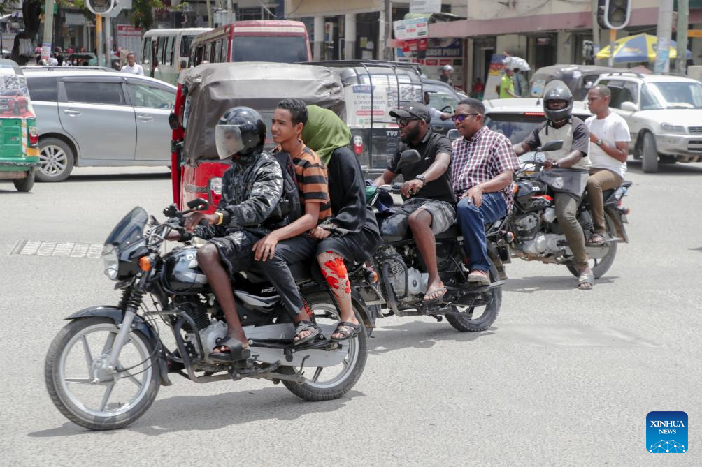Pessoas se deslocam de motocicleta em Dar es Salaam, Tanzânia, em 4 de abril de 2026. (Foto de Emmanuel Herman/Xinhua)