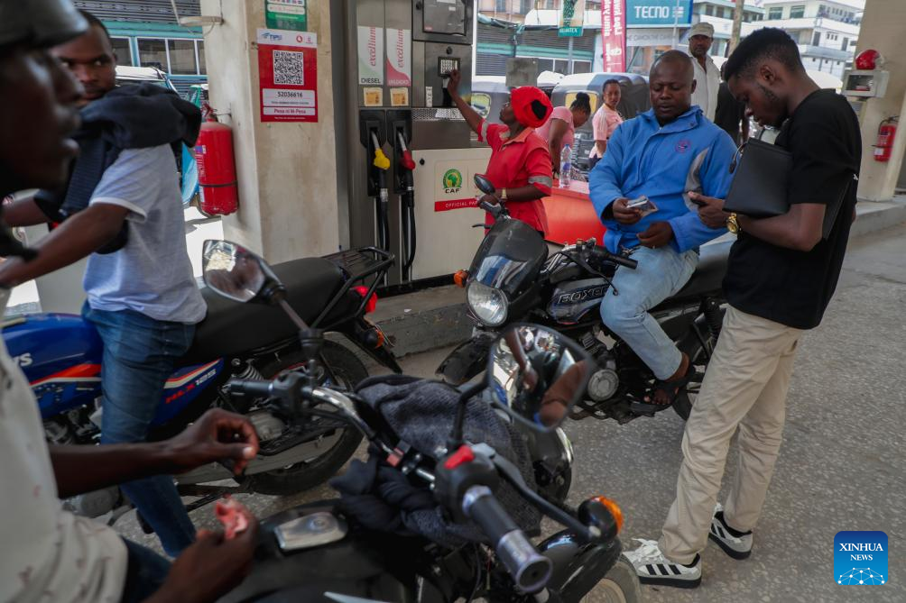 Homem abastece motocicleta em um posto de gasolina em Dar es Salaam, Tanzânia, em 4 de abril de 2026. (Foto de Emmanuel Herman/Xinhua)