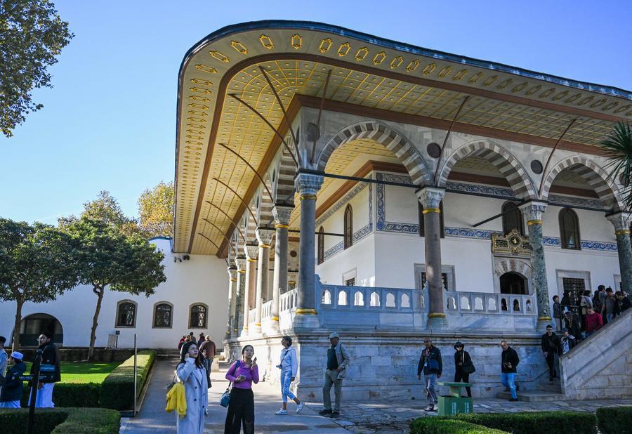 Turistas visitam o Museu do Palácio Topkapi em Istambul, Turquia, em 23 de outubro de 2024. (Xinhua/Liu Lei)