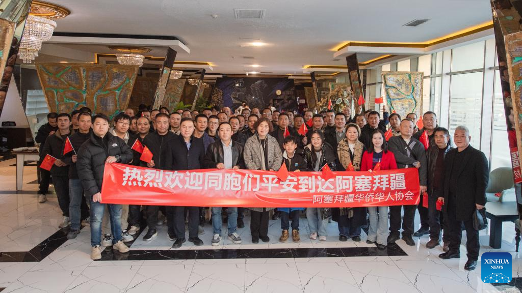Baku, 5 mar (Xinhua) -- Por volta das 17h, horário local (13h GMT) desta terça-feira, um ônibus transportando 48 cidadãos chineses evacuados do Irã parou lentamente em frente ao Caspian Business Hotel, na capital do Azerbaijão.