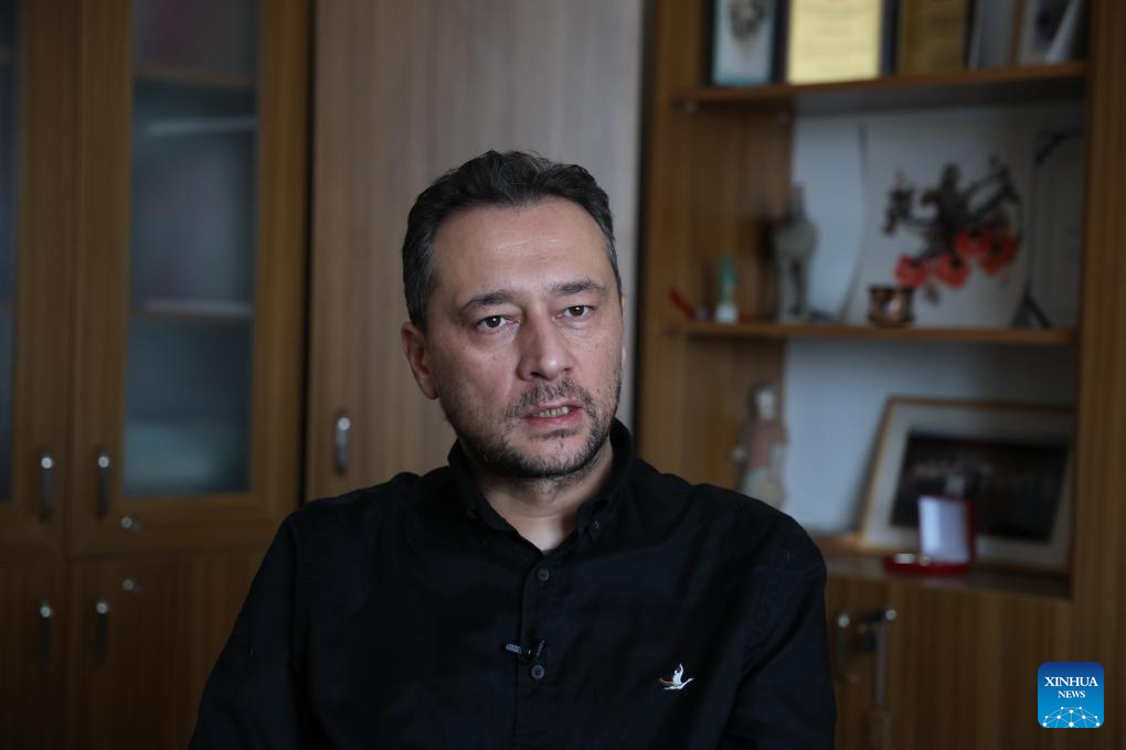 Giray Fidan, chefe do Departamento de Língua e Literatura Chinesas da Universidade Haci Bayram Veli, dá entrevista à Xinhua em Ancara, Turquia, em 16 de fevereiro de 2026. O interesse pela língua e literatura chinesas está crescendo entre o público turco, refletindo o desenvolvimento econômico e tecnológico da China, disse um sinólogo turco radicado em Ancara. (Mustafa Kaya/Divulgação via Xinhua)