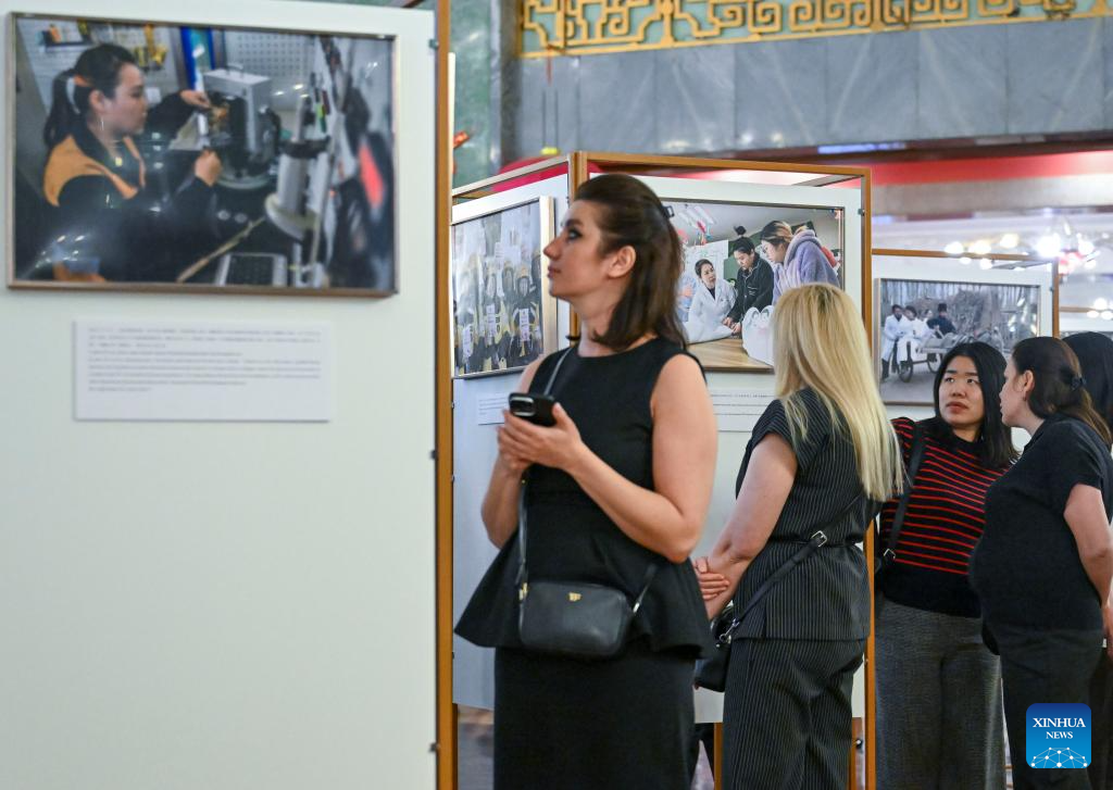 A exposição apresenta cerca de 40 fotografias selecionadas que mostram o progresso da causa das mulheres chinesas e os resultados das trocas e da cooperação entre a China e a Rússia nessa área. (Xinhua/Hao Jianwei)