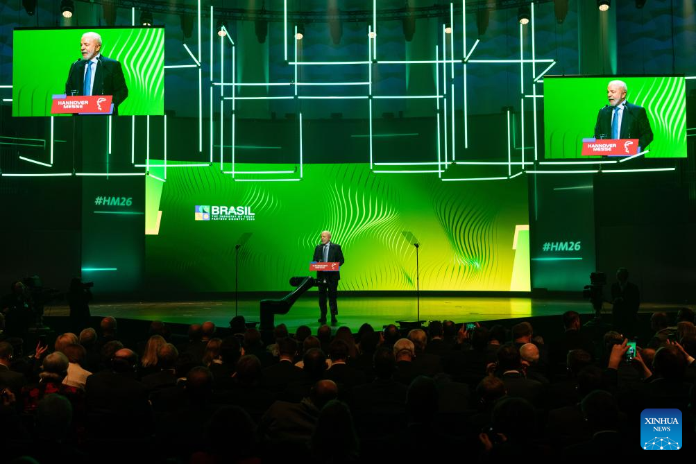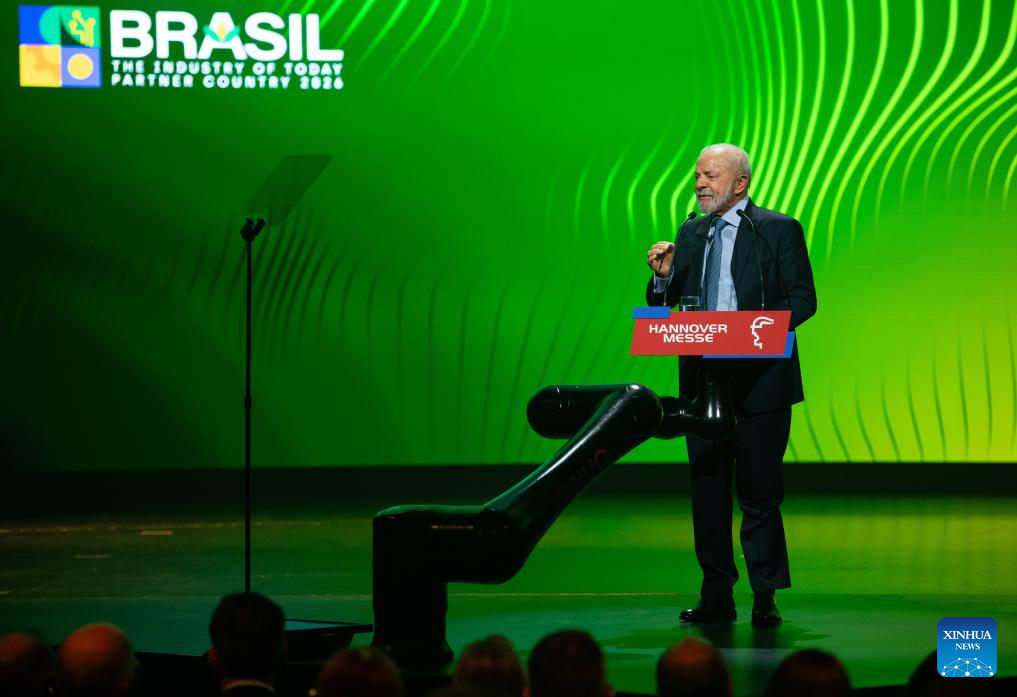 O presidente brasileiro, Luiz Inácio Lula da Silva, discursa na cerimônia de abertura da Feira de Hannover 2026, em Hannover, Alemanha, em 19 de abril de 2026.