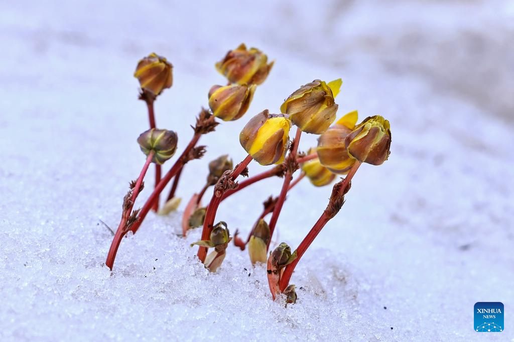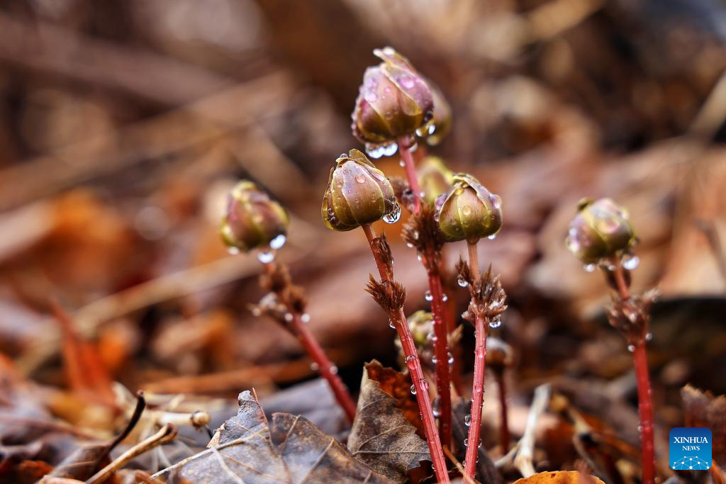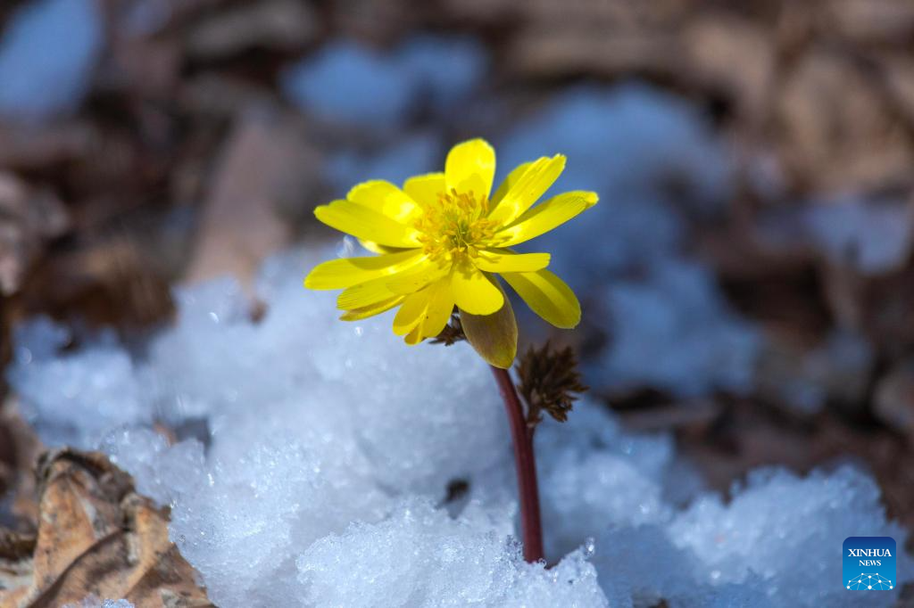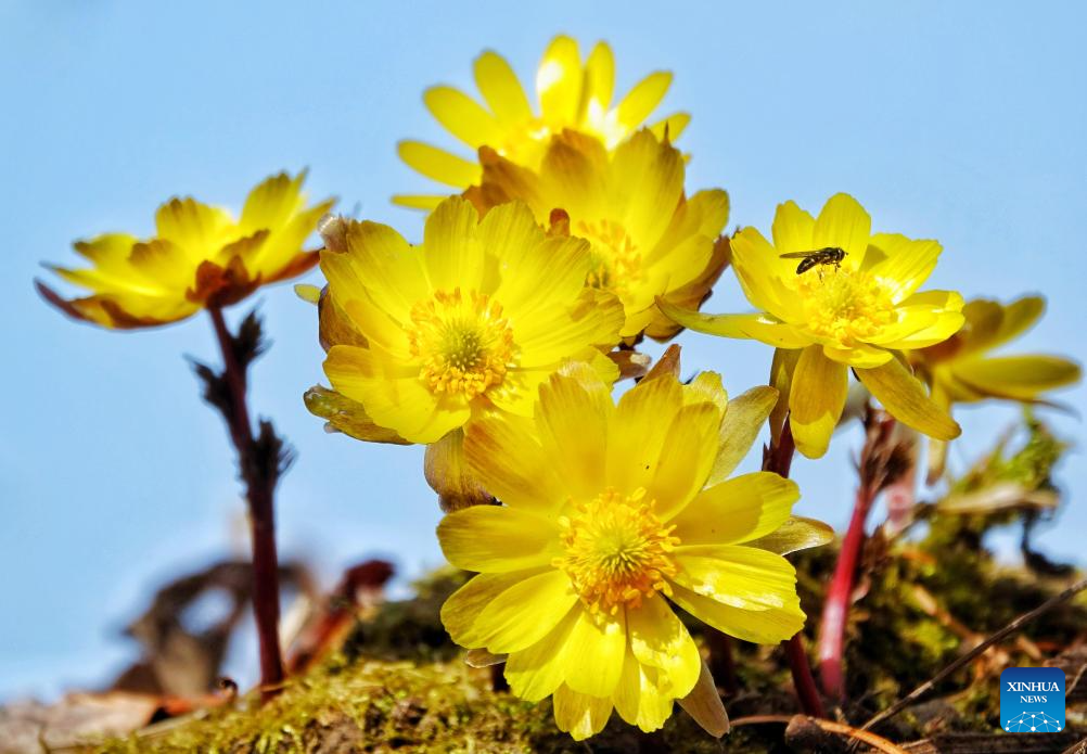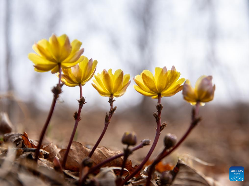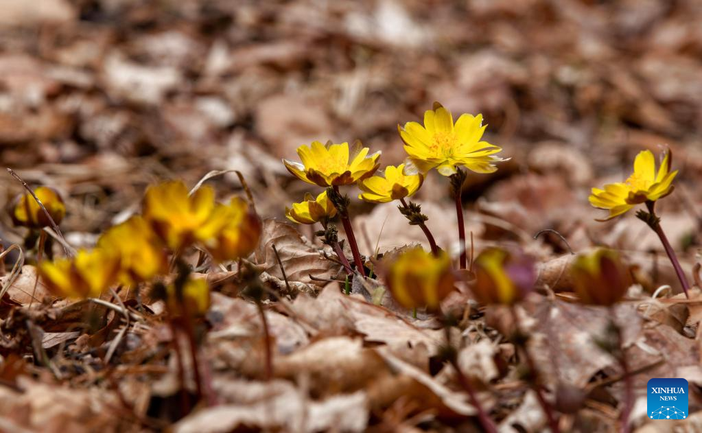 2. Flores de adonis amurensis desabrocham em parque florestal em Fujin, em Heilongjiang, nordeste da China