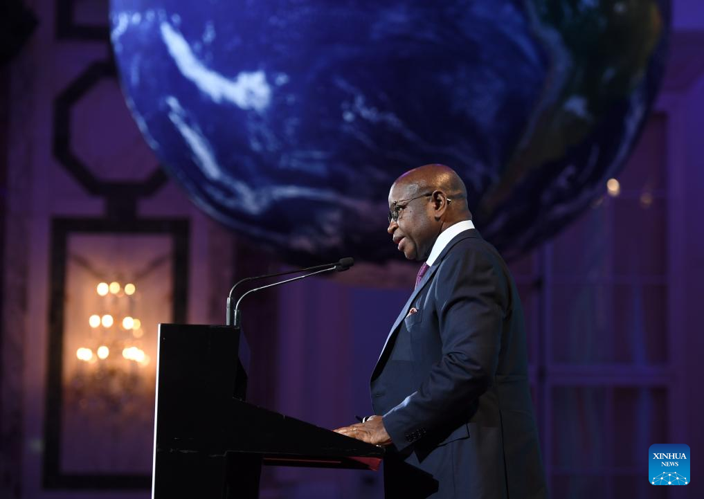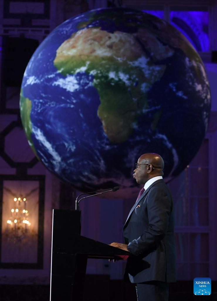 O presidente de Serra Leoa, Julius Maada Bio, discursa no Fórum Internacional de Energia e Clima de Viena, na Áustria, em 9 de abril de 2026. Sob o tema "Impulsionando a Prosperidade, a Segurança e a Estabilidade", o Fórum Internacional de Energia e Clima de Viena 2026 começou na quinta-feira. (Xinhua/He Canling)