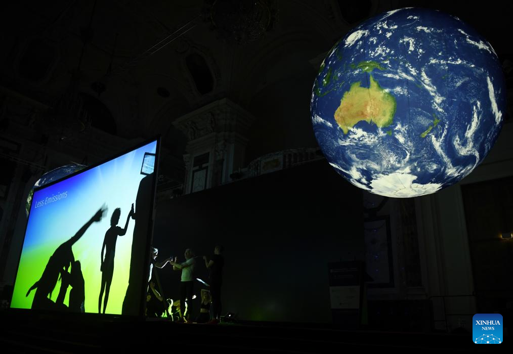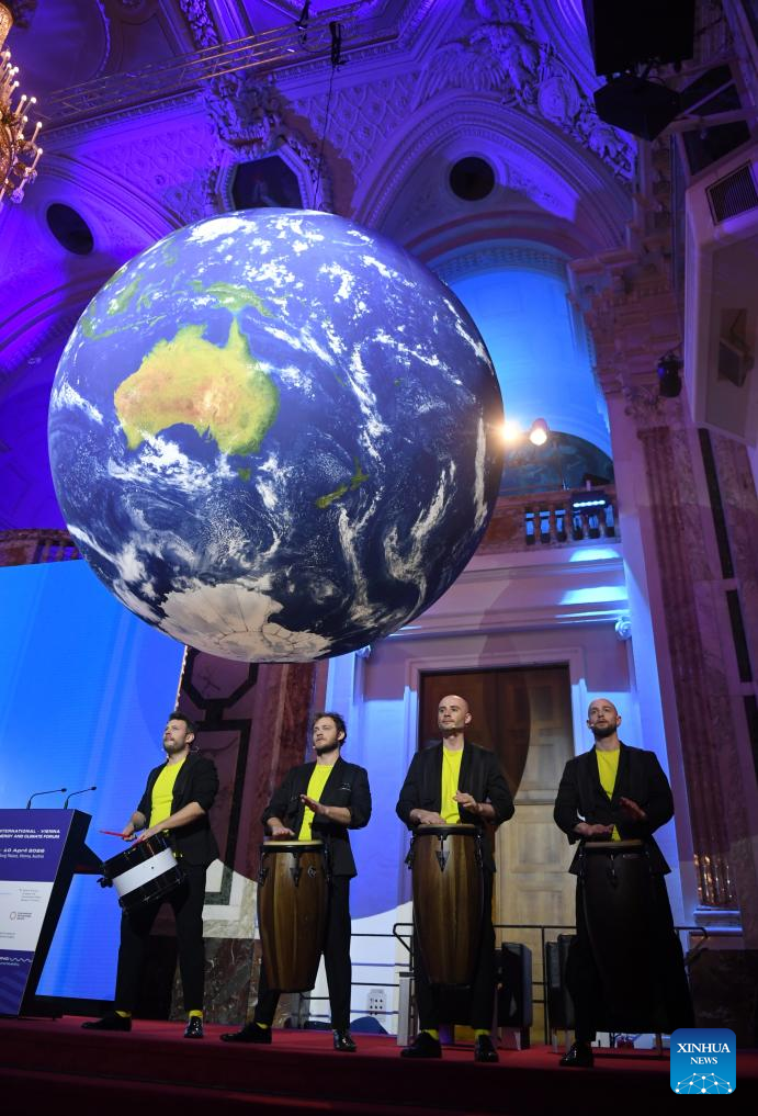 Foto tirada em 9 de abril de 2026 mostra apresentação artística no Fórum Internacional de Energia e Clima de Viena, na Áustria. Sob o tema "Impulsionando a Prosperidade, a Segurança e a Estabilidade", o Fórum Internacional de Energia e Clima de Viena 2026 começou na quinta-feira. (Xinhua/He Canling)
