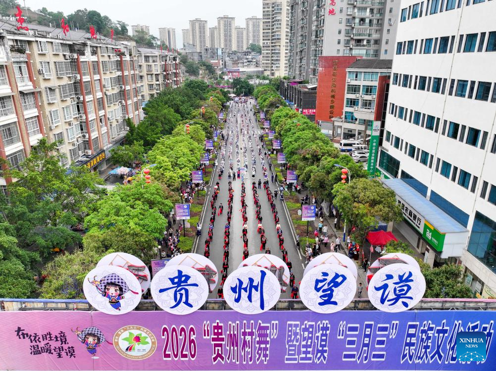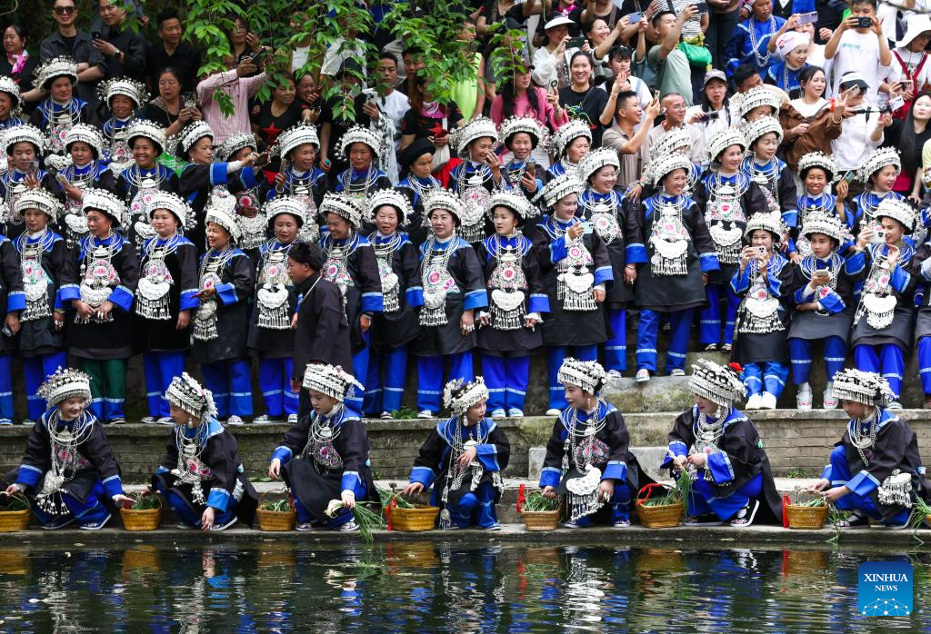Moradores celebram o Festival Sanyuesan em Guizhou