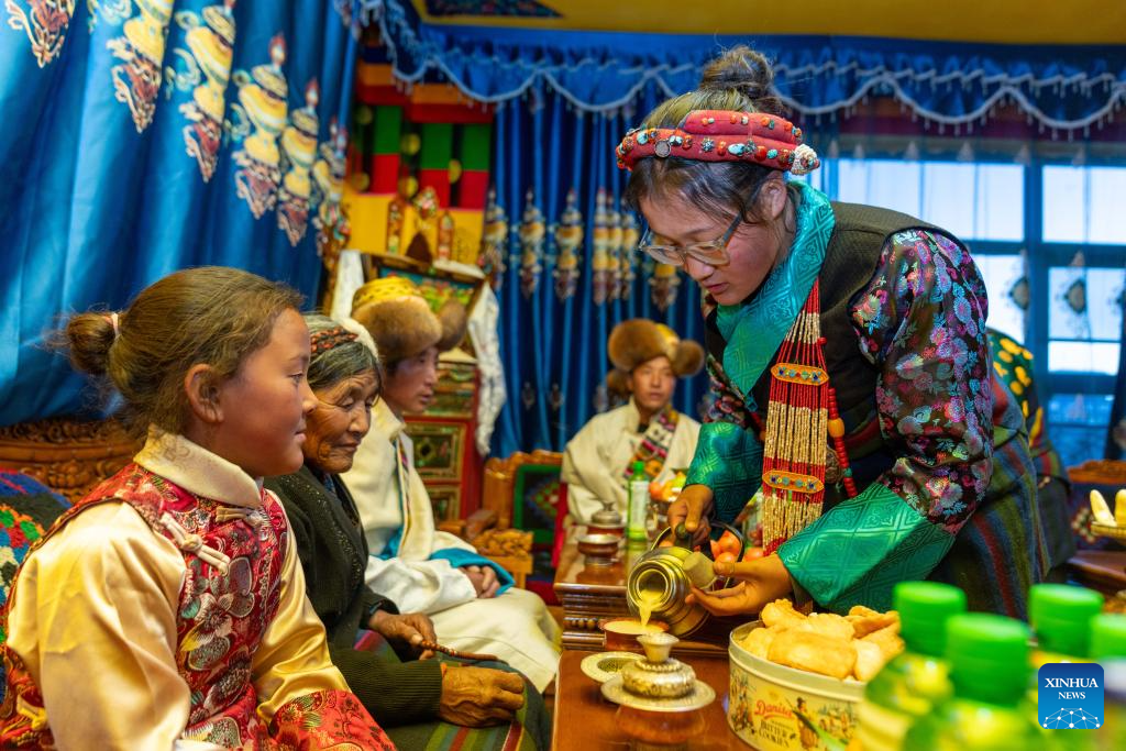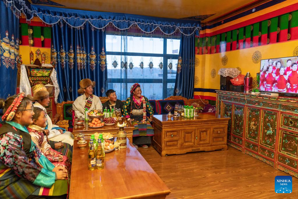 Moradores celebram primeira Festa da Primavera e Ano Novo Tibetano em novas casas após terremoto no Distrito de Dingri, em Xizang