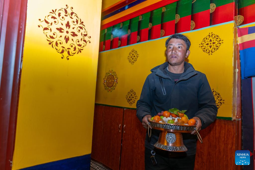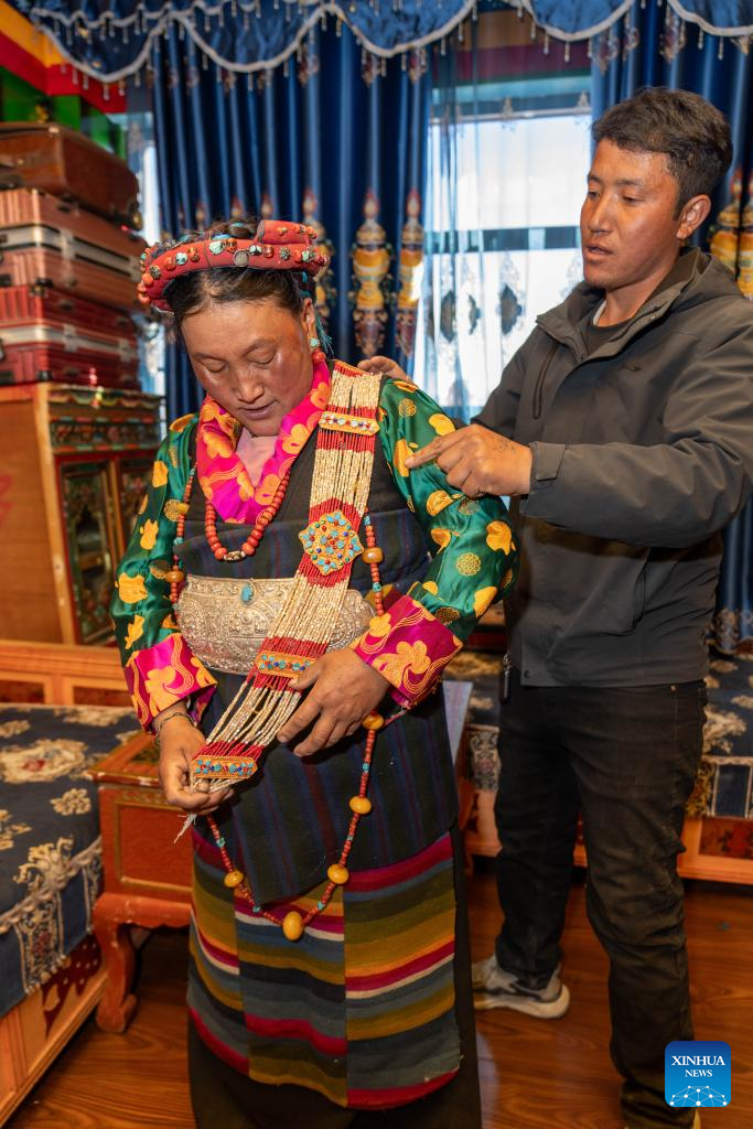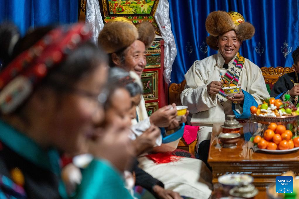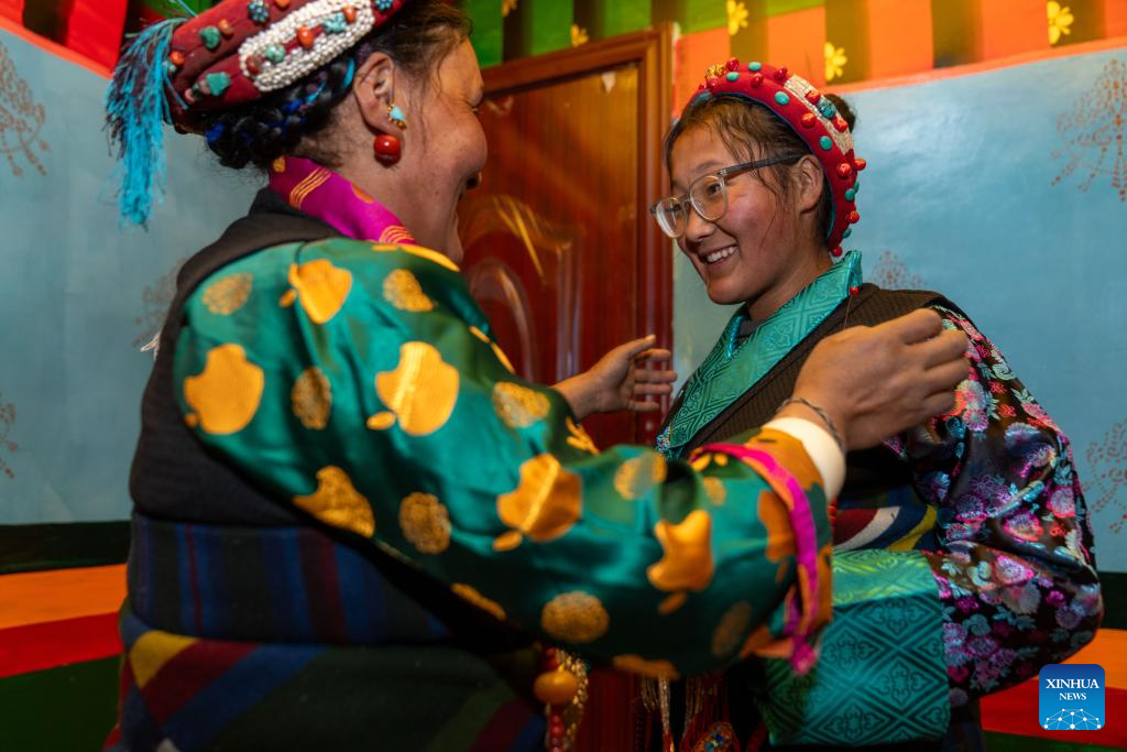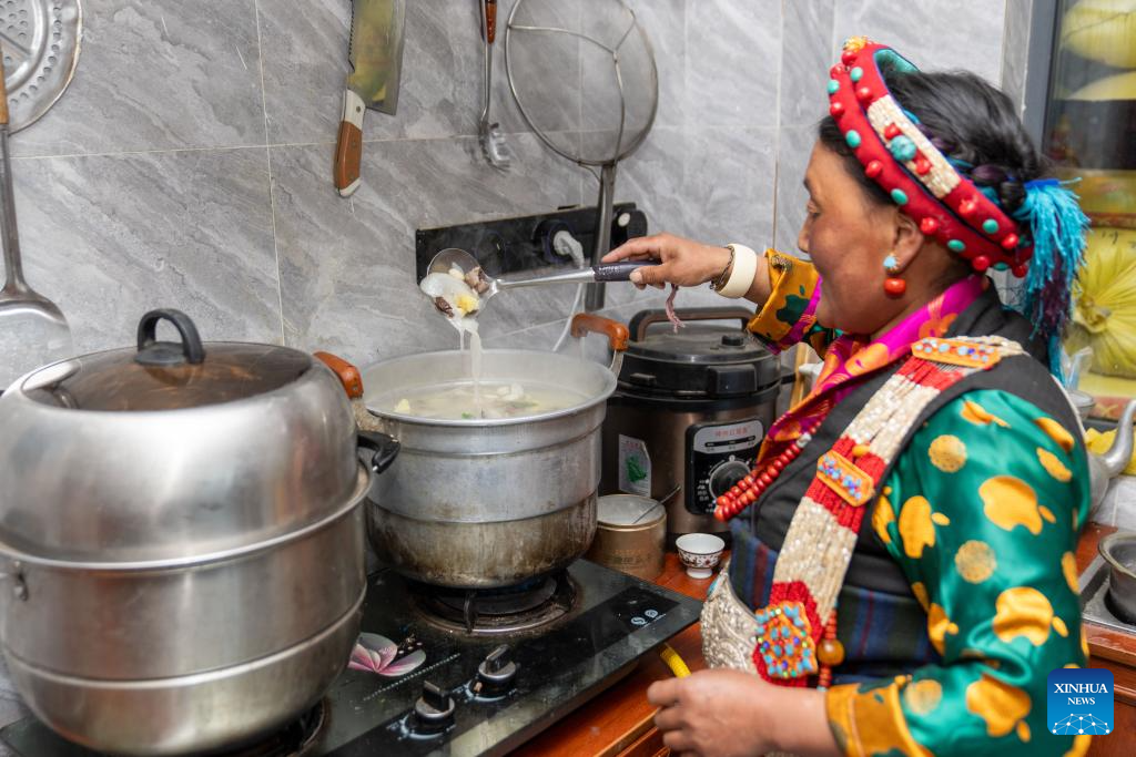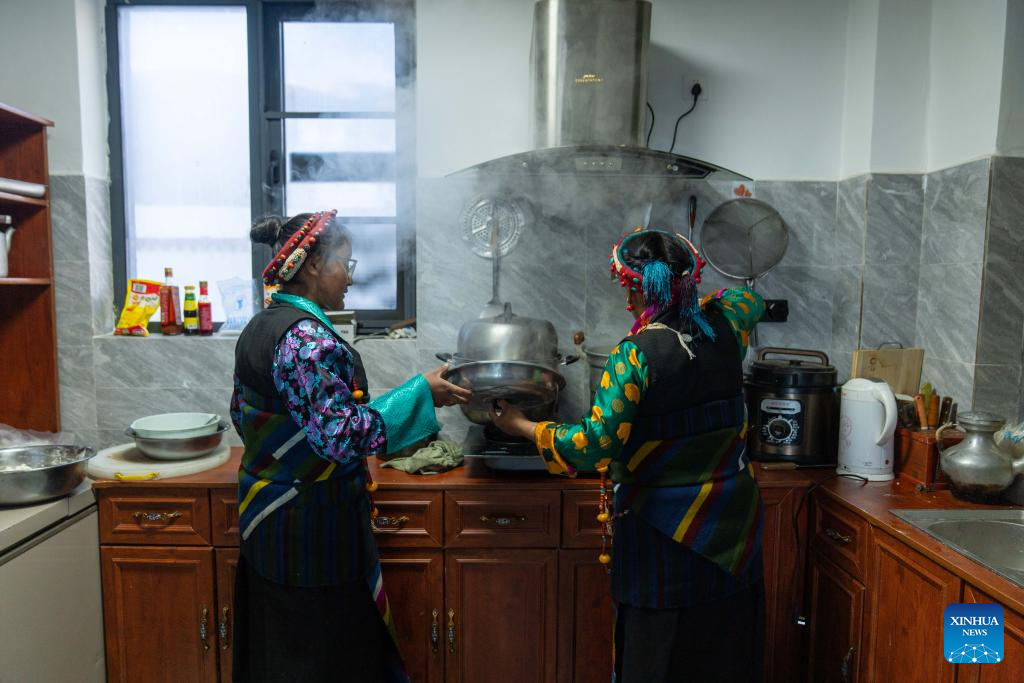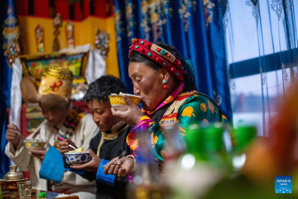 2. Moradores celebram primeira Festa da Primavera e Ano Novo Tibetano em novas casas após terremoto no Distrito de Dingri, em Xizang