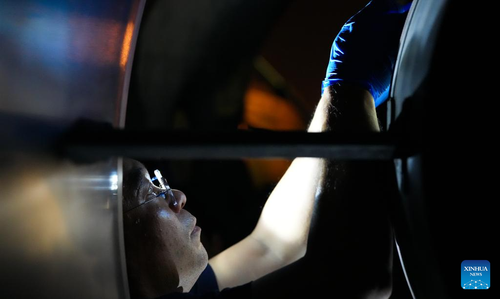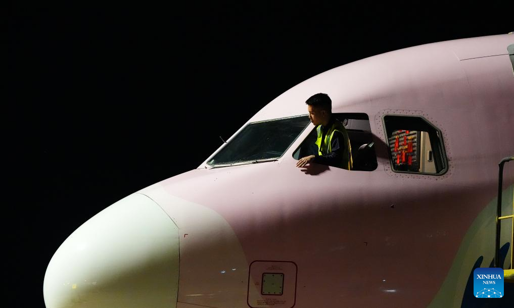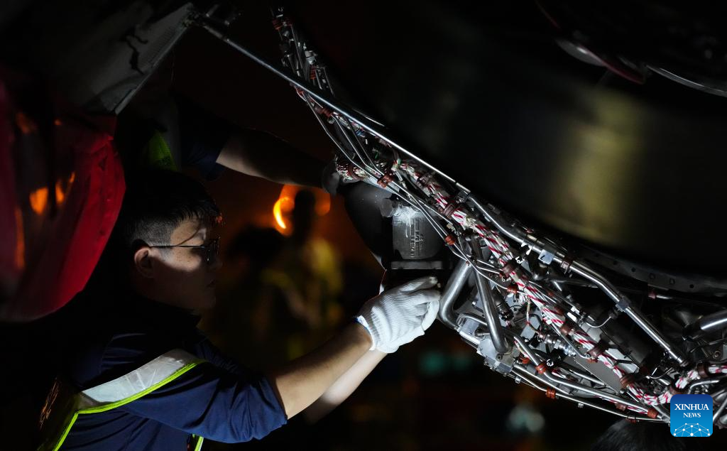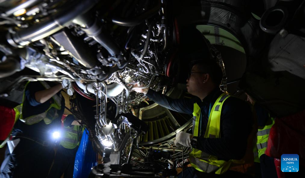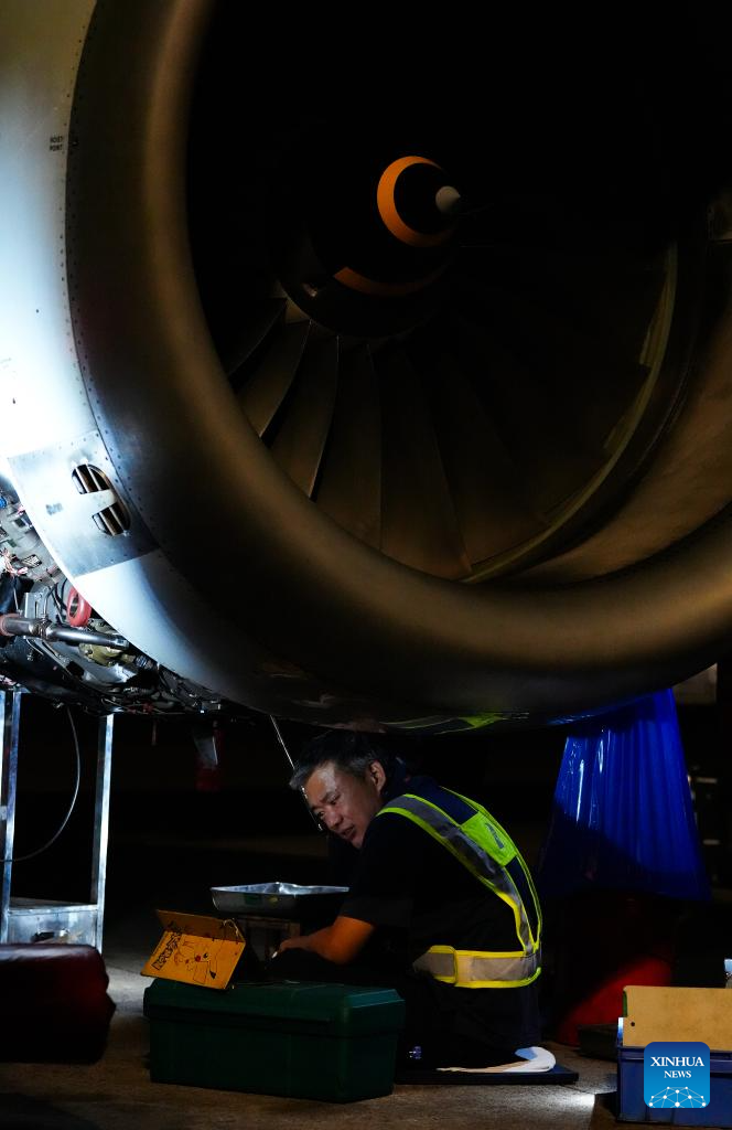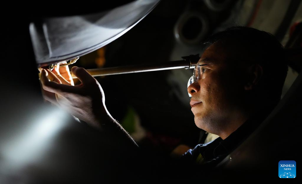 2. Técnicos fazem manutenção em avião temático da Exposição Internacional de Produtos de Consumo da China em Haikou