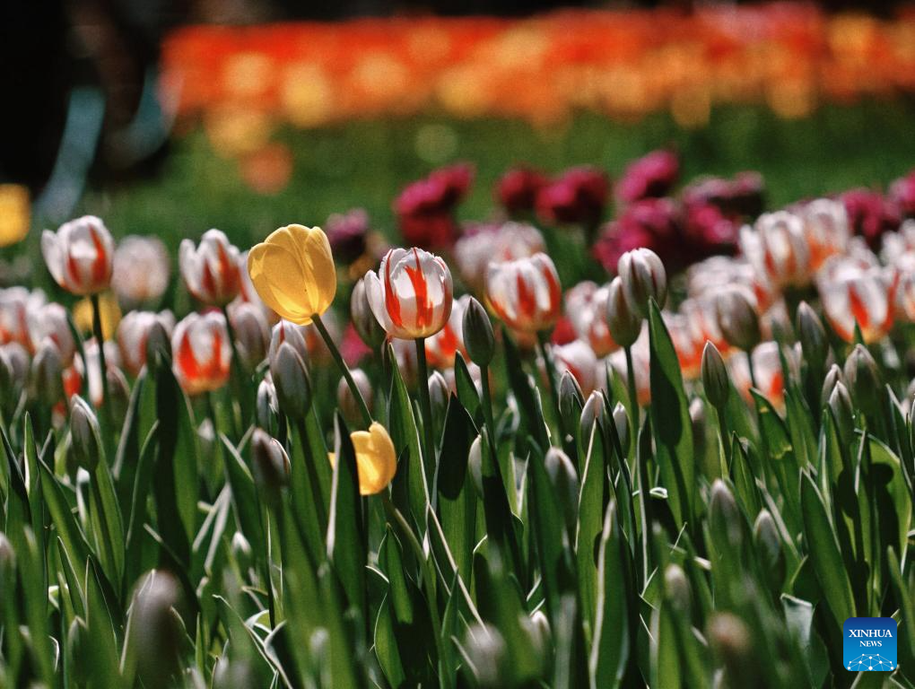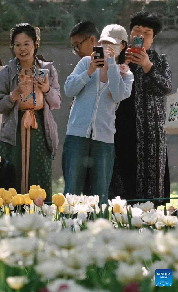 2. Tulipas em floração encantam visitantes no Parque Zhongshan em Beijing