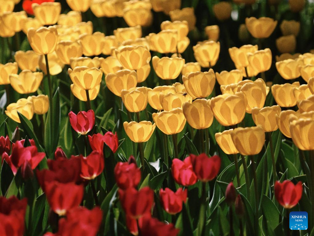 Tulipas em floração encantam visitantes no Parque Zhongshan em Beijing